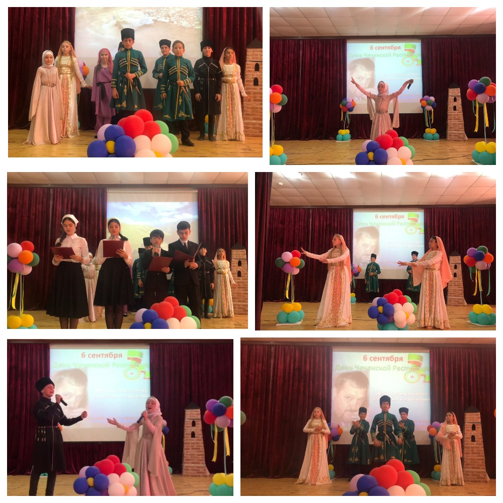 В первую очередь, надо отметить, что этот день был учрежден в тяжелый период в истории народов республики. Ведь мы хорошо помним, как выглядела наша республика в 2002 году и знаем, что пришлось всем пережить в те трагические годы.Лишь Первый Президент ЧР, Герой России Ахмат-Хаджи Кадыров сумел доказать, что этот путь приведет народы республики к пропасти. Он с первых дней говорил о необходимости объединения и сплочения. Как известно указ Первого Президента ЧР, Героя России Ахмата-Хаджи Кадырова по утверждению дня чеченской республики был подписан 4 сентября 2002 года. Ровно 17 лет исполняется этому событию. Этот праздник символизирует объединение нашего общества, отказ от национальных катастроф, от сепаратизма, от экстремизма, терроризма и других не нужных настроений, которые были в республике в тот период , и вывод чеченского народа на путь благополучия и процветания, по которым следует его сын -Глава ЧР, Герой России, Рамзан Ахматович Кадыров. А наши талантливые гимназисты ( Мадаева Ясмина, Заурбаева Амина, Хуржаев Магомед, Батыров Хож-Ахмед) рассказали всем об этом празднике, станцевали ( Мадаговы Илисхан и Элита, Азизовы Магомед-Салахь и Мансума, Закаев Идрис, Асхабов Рамзан, Вахаева Марьям), исполнили стихи и песни ( Буруевы Адам и Амина) в честь этого знаменательного дня для нашей республики, для нашего народа.