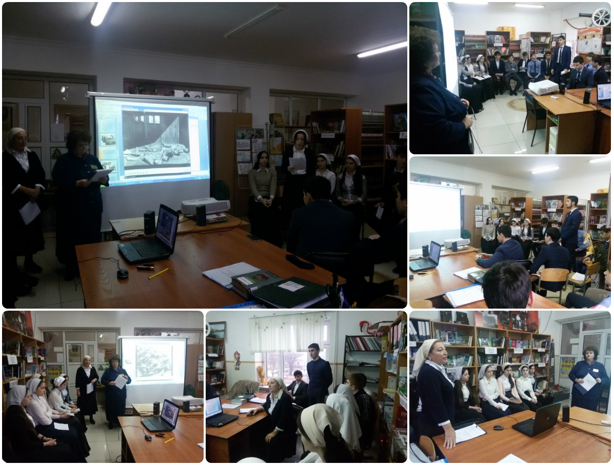 23 декабря 2015 года с целью воспитания у учащихся чувства неприятия войны как средства решения международных конфликтов, понимания неизбежности расплаты за преступления против человечества, расширения знаний о второй мировой войне, о Нюрнбергском процессе и его исторической роли для учащихся 11 А класса под руководством классного руководителя Ильясовой Натальи Анатольевны и библиотекаря Куразовой Зареты Ганиевны проведен круглый стол «Страницы Нюрнбергского процесса». Дети познакомились с презентацией «Нюрнбергский процесс», посмотрели фильм А.Г. Звягинцева «Нюрнберг-70 лет спустя».