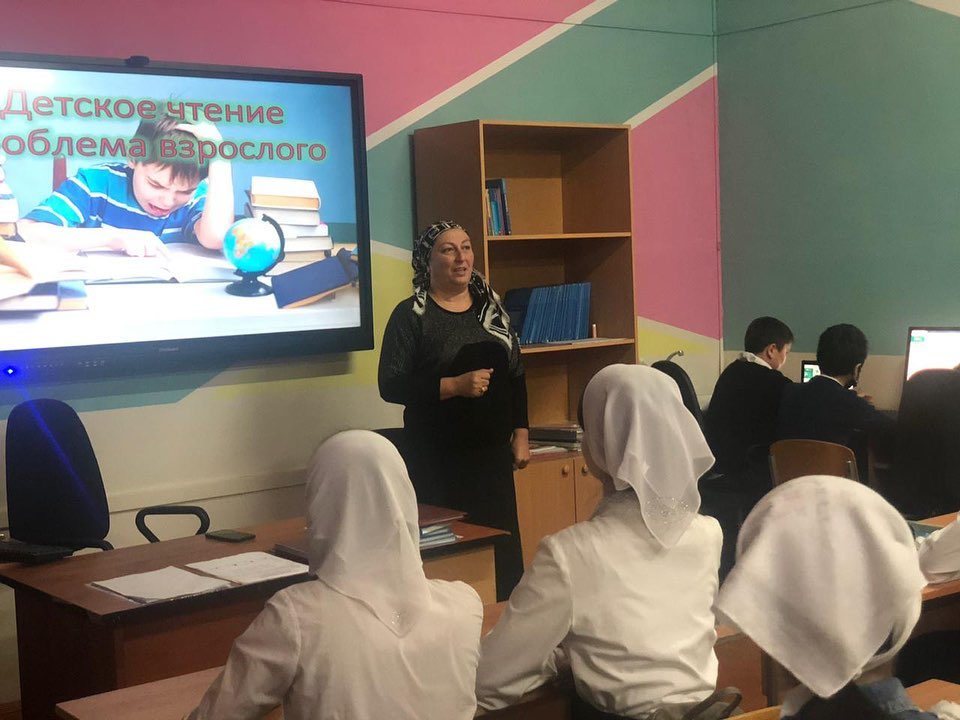 На мероприятиях присутствовала начальник УО Гудермесского района Куразова М.И. Разговор шел о семейном, детском и подростковом чтении. «Дом без книги – день без солнца» — так назывался урок в 1А классе, который провела Макаева А.Ш. Он был посвящен проблемам чтения дошкольников, а также важной роли родителей в становлении юного читателя. О пользе семейного чтения рассказала Куразова З.Г. Педагоги Гимназии поделились с коллегами своим опытом по проведению уроков, представили мероприятия по приобщению к чтению подростковой аудитории, а также презентовали «Топ книжных серий» для детской и подростковой аудитории. Проведение таких бесед стало ценным опытом для всех присутствующих, дало стимул к дальнейшей деятельности и изысканию новых путей совершенствования своей профессиональной истории.