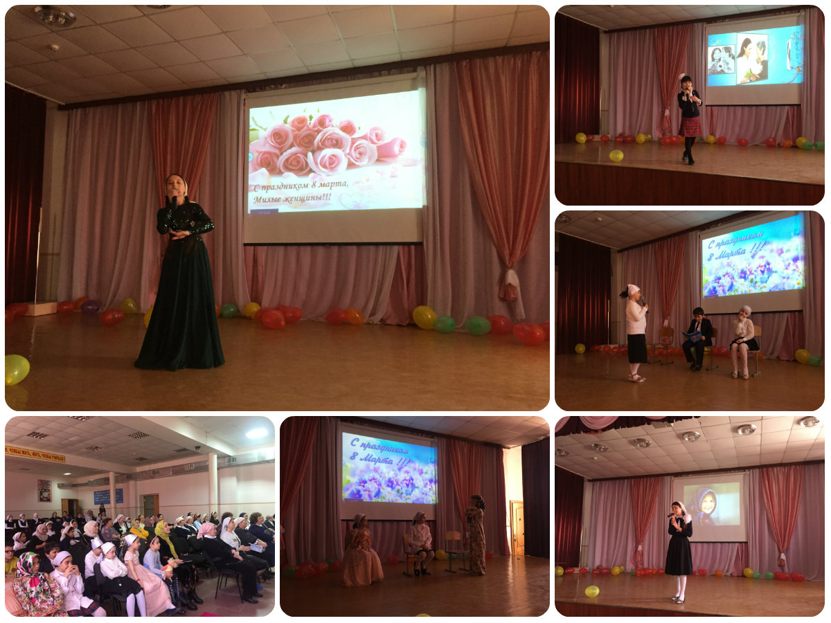Ведущие мероприятия Байгереев Арсен и Аюбов Артур пожелали прекрасной половине нашей планеты неугасающего блеска в глазах, нескончаемой энергии, неувядающей любви. На протяжении всего мероприятия между песнями звучали стихотворения, посвященные этому празднику и любимым мамам, сестрам и бабушкам. Прекрасно исполнила песню Куразова Селима «Мама моей мамы». Также Амлиева Маьлх – Аьзни спела песню о самом дорогом человеке – матери, почитание которой священный долг каждого. Бурю эмоций и искренний смех вызвал юмористический фильм – поздравление, а также сценки, исполненные обучающимися 3 «Д» класса.