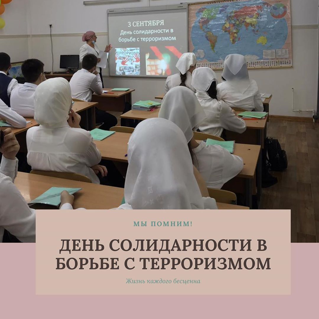 Она напрямую связана с событиями в Беслане 1—3 сентября 2004 года. В день солидарности в борьбе с терроризмом не только в Беслане, но и по всей стране вспоминают жертв террористических актов, а также сотрудников правоохранительных органов, погибших при выполнении служебного долга.Сегодня в гимназии прошли классные часы, посвященные этой памятной дате.