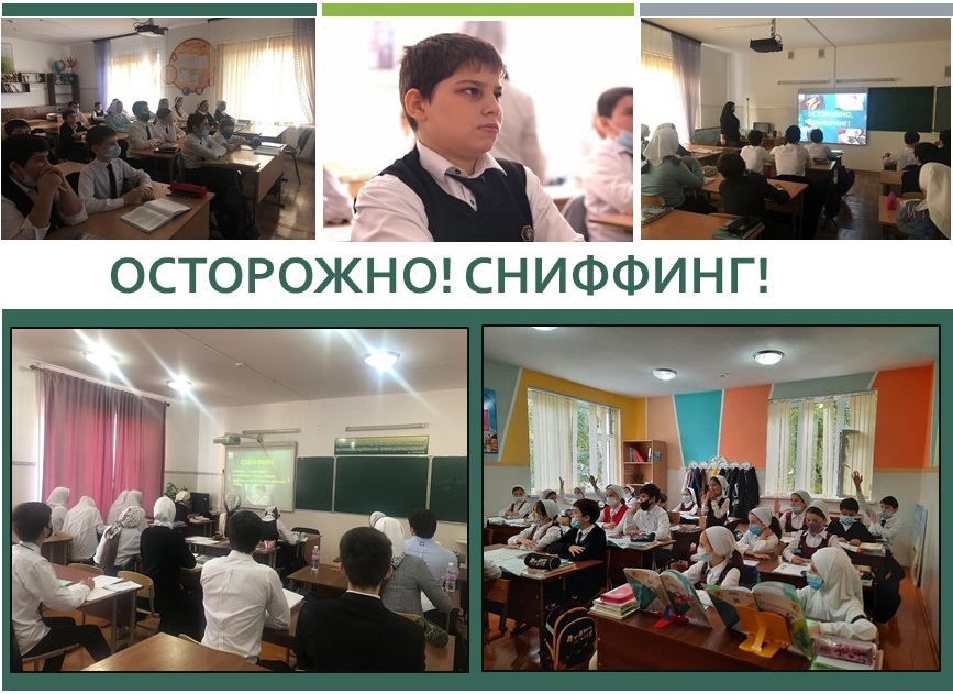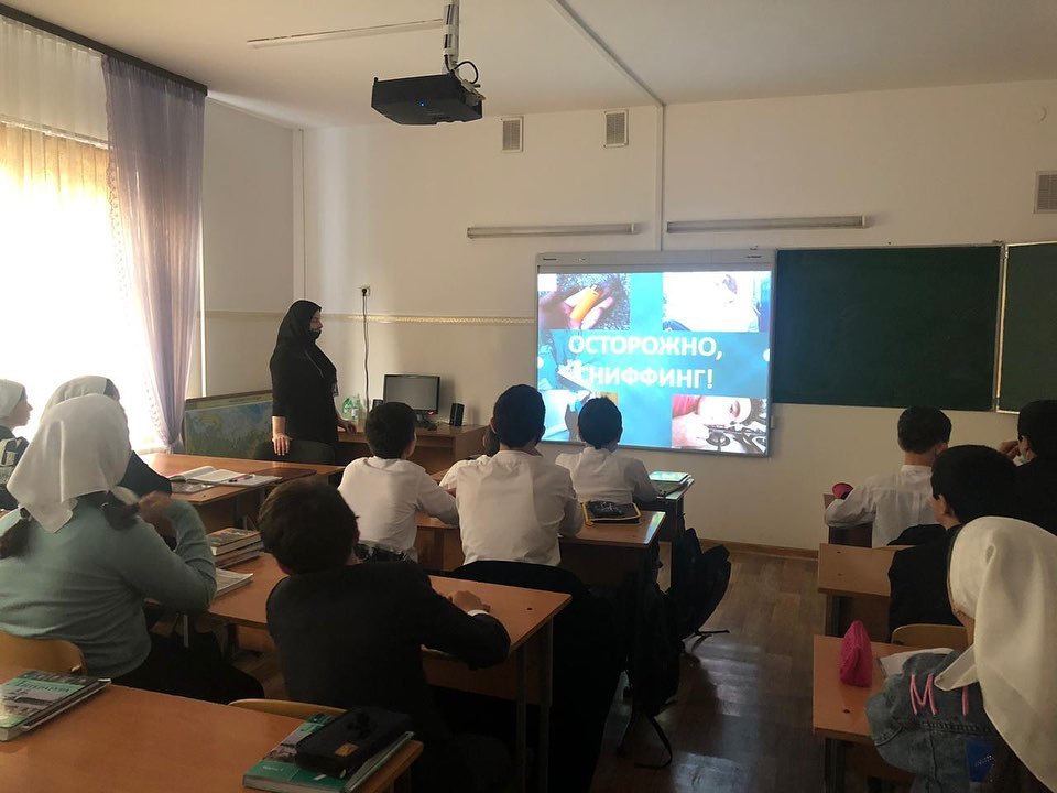 03.11.2020В соответствии с рекомендациями Министерства образования и науки Чеченской Республики N1153/07-29 от 01.10.2020 г. по организации работы классных руководителей, педагогов-психологов и социальных работников по профилактике новых видов подростковой токсикомании и употребления никотиносодержащей продукции в гимназии проведены классные часы и беседы с обучающимися 7-11-х классов на тему: «Осторожно! Сниффинг!»