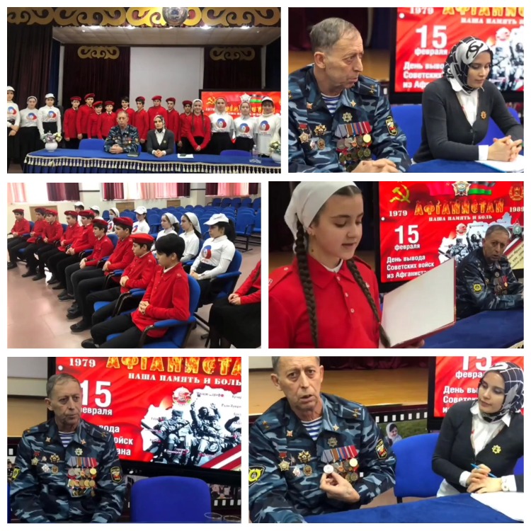 15.02.2021Встреча ВДЮВПОД «Юнармейцы» с ветераном Афганской войны Джамалуевым Р.Р.15 февраля 1989 года, последняя колонна советских войск покинула территорию Афганистана. Это событие ознаменовало для Советского Союза окончание Афганской войны, которая продлилась почти десять лет и унесла жизни более 15 тысяч советских граждан. В 2010 году «День памяти воинов-интернационалистов» приобрел официальный статус.