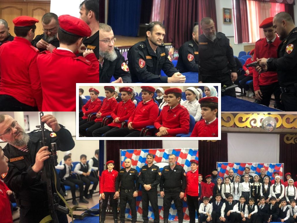 В ходе встречи сотрудники рассказали обучающимся об особенностях своей профессии, как круглосуточно несут службу по охране общественного порядка, выполняют другие ответственные задачи, обсудили вопросы безопасности в современном мире и возможности противостояния различного вида угрозам.В беседе с представителями Росгвардии гимназисты узнали о мерах ответственности, предусмотренной за ложное информирование спецслужб о событиях чрезвычайного характера,напомнили об основах личной безопасности в информационном пространстве сети Интернет и в социальных сетях. Ребятам рассказали,что они, несмотря на свой юный возраст, благодаря патриотизму и чувству ответственности могут помочь противостоять деструктивным проявлениям сегодняшнего времени. В своих беседах гости опирались на славные примеры прошлого, напомнили, какой ценой достигли мира в Чеченской Республике и что все должны трудиться на этом пути процветания и созидания. Особый интерес у Юнармейцев вызвала демонстрация стрелкового оружия. Под присмотром офицеров ребята подержали в руках настоящее оружие, сами попробовали его разобрать и собрать. В заключение активисты РДШ приняли росгвардейцев в ряды РДШ гимназии. Подводя итоги беседы, собравшиеся выразили желание повторить подобную встречу. Такого рода встречи обогащают и расширяют кругозор детей. Спасибо за интересную и познавательную встречу!