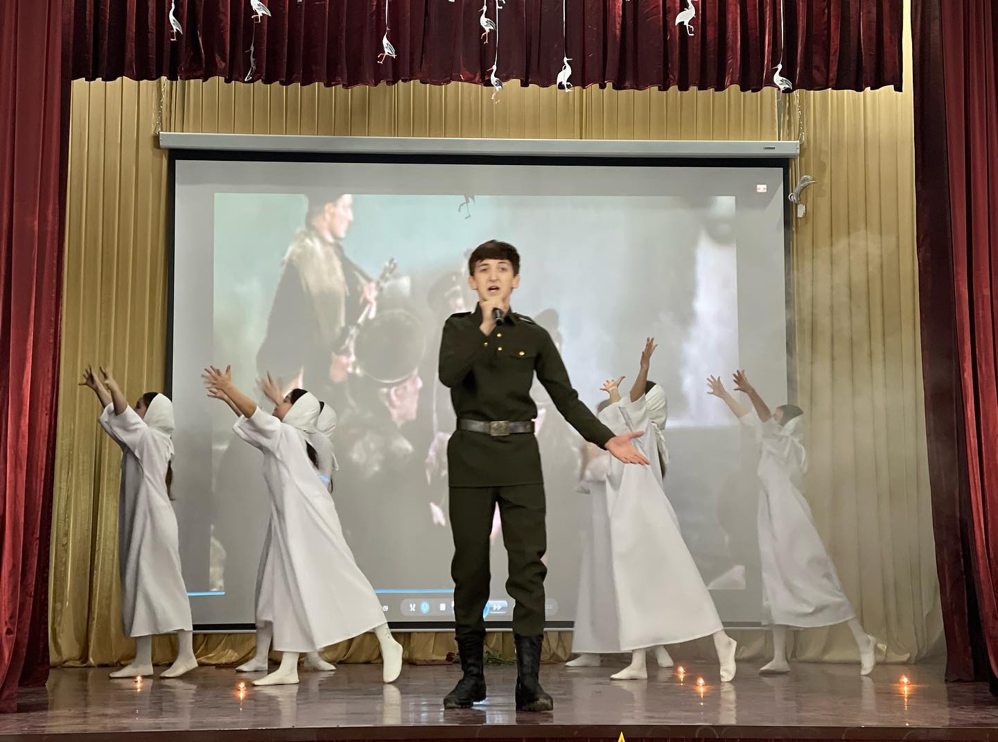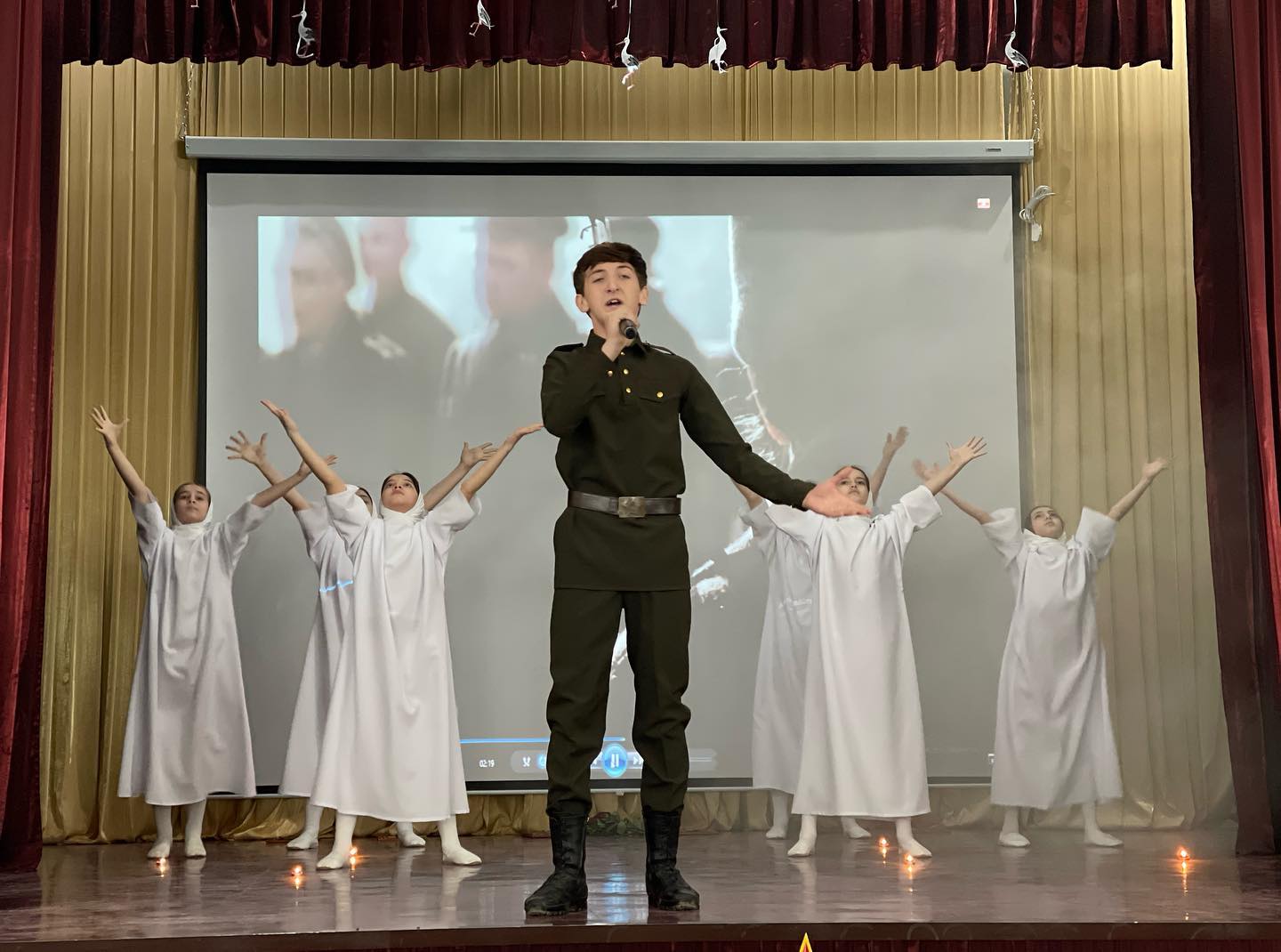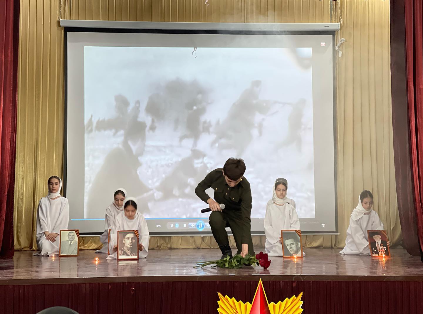 «Верните память». Муниципальный конкурс военно-патриотической песни «От солдата до генерала». Исполнитель -Буруев Адам, обучающийся 9-го класса; инсценировка- Заурбаева Хадиджа, Батырова Ашура, Гайсултанова Саада, Берсанова Хадижа, Тасаева Ашура, Муталипова Алина, обучающиеся 4 А класса.