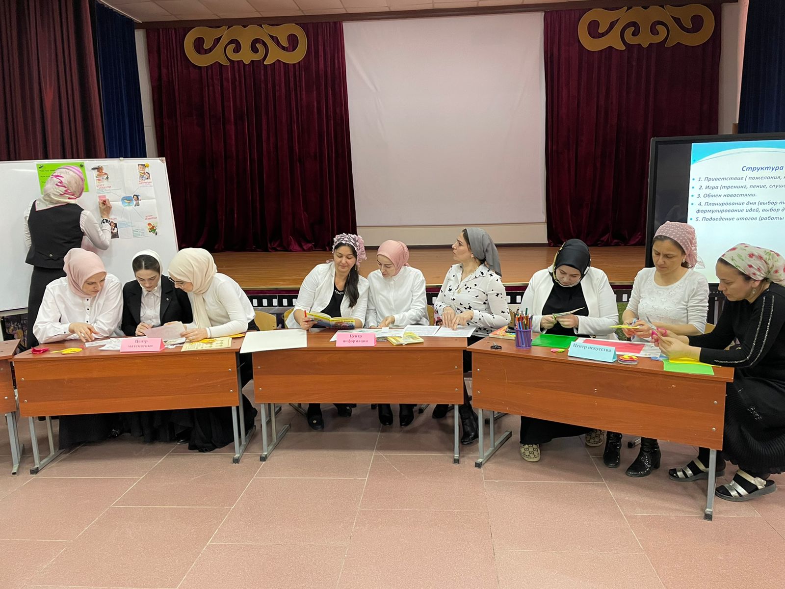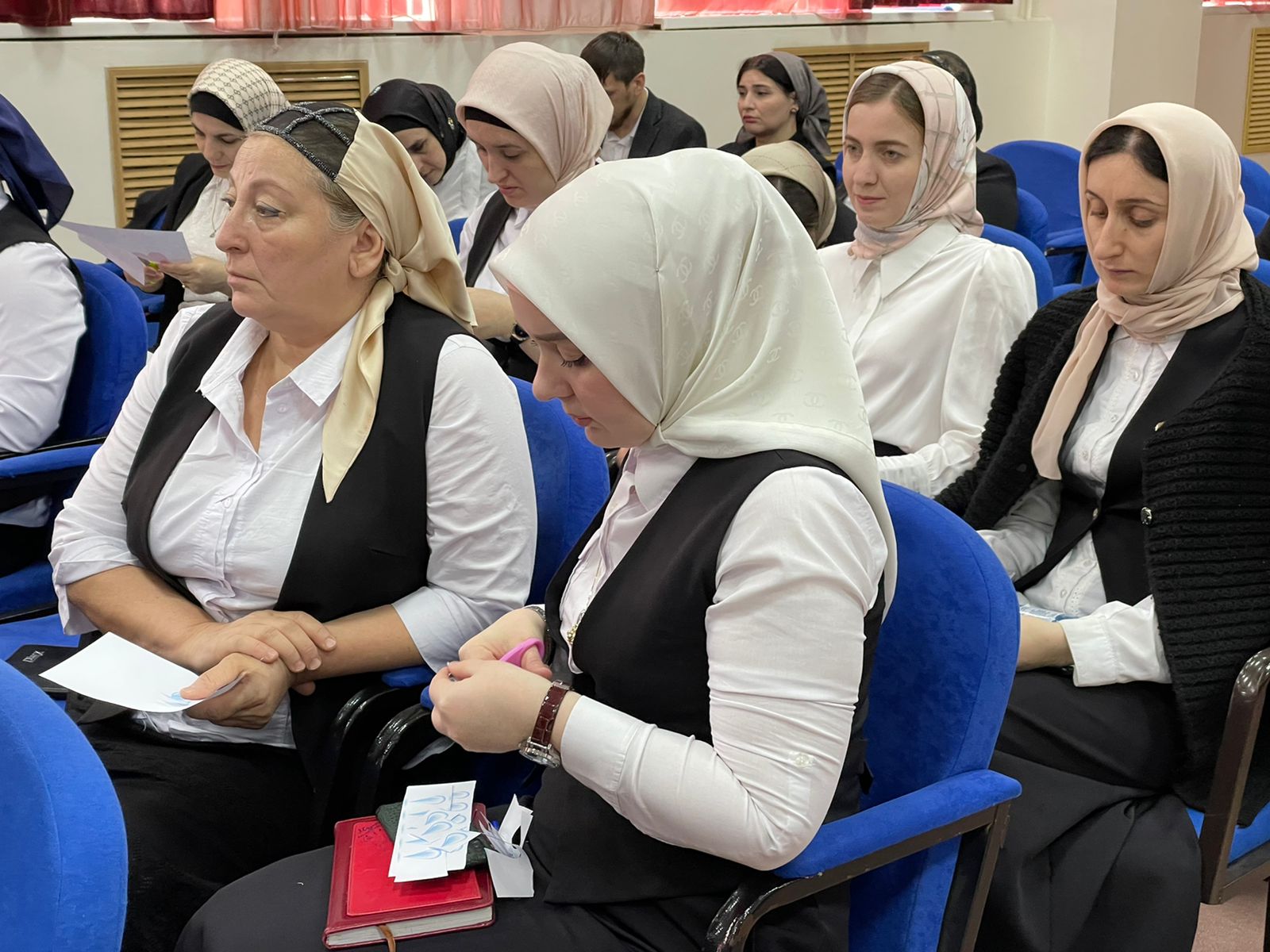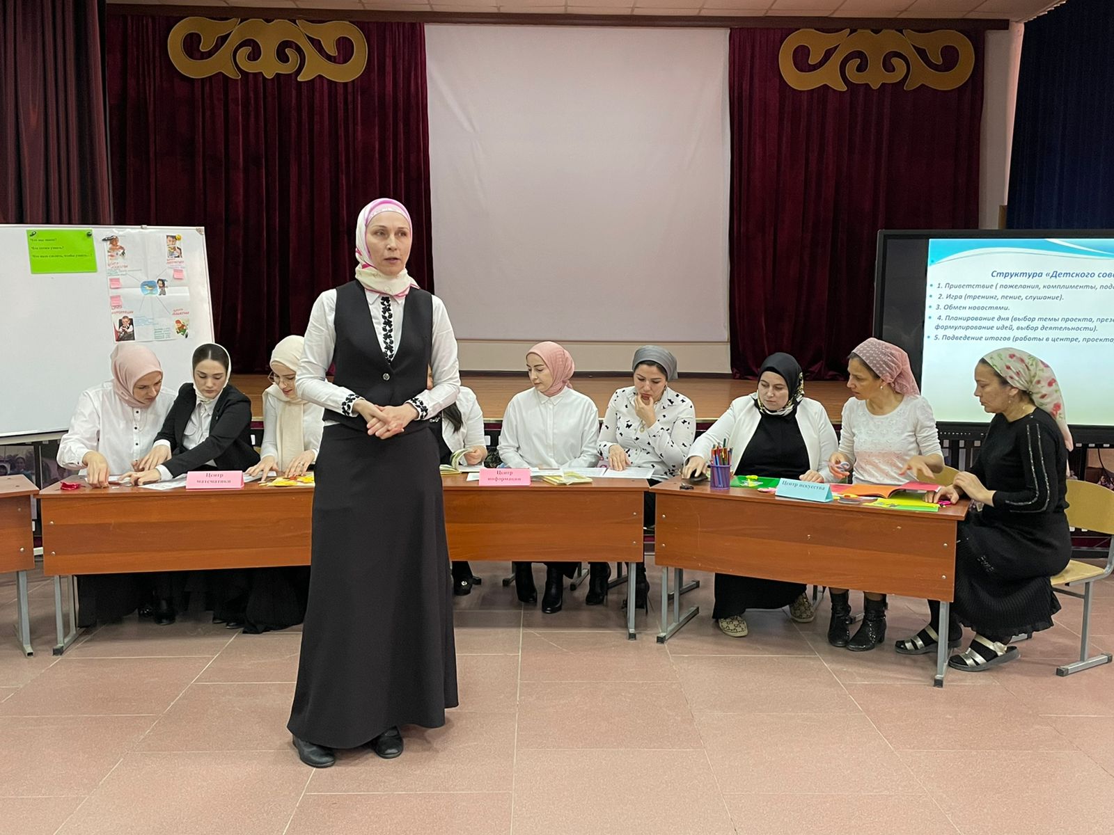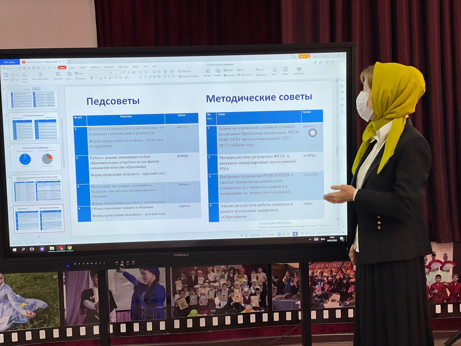 Яркий и очень интересный мастер-класс "Технология Свирской Л.В. «Детский совет» как фактор успешной социализации детей группы риска в начальной школе" провела учитель начальных классов Шемилова М.С.С технологией «Ситуация месяца» как способом интеграции образовательных областей в педагогическом процессе участники педсовета познакомились в ходе деловой игры, которую провела учитель русского языка и литературы Майлова Э.В. Рефлективную часть педсовета провела директор гимназии Дадагова Хава Магомедовна в форме тренинга, на котором участники педсовета искали ответ на вопрос "Роли педагога в учебном процессе". Аналитическая часть педсовета была посвящена итогам учебно-воспитательной деятельности. С презентацией выступила заместитель директора по УР Каимова Р.Г. Итоги работы на портале "Дневник.ру" подвел заместитель директора по ИКТ Абдукаримов И.И. По итогам методической работы выступила заместитель директора по МР Мусаева Л.Л.