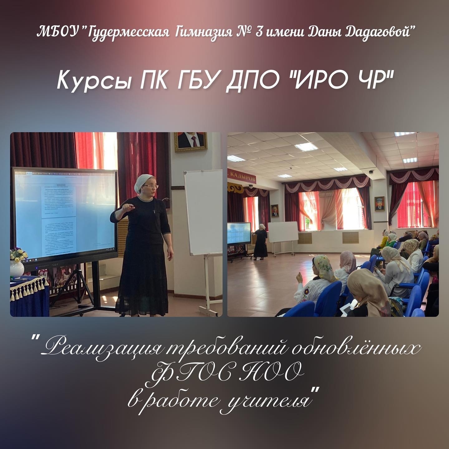 23 июня 2022 года на базе МБОУ "Гудермесская Гимназия № 3 имени Даны Дадаговой" начались курсы повышения квалификации, организованные ГБУ ДПО "ИРО ЧР", для учителей начальных классов Гудермесского и Ножай-Юртовского муниципальных районов.