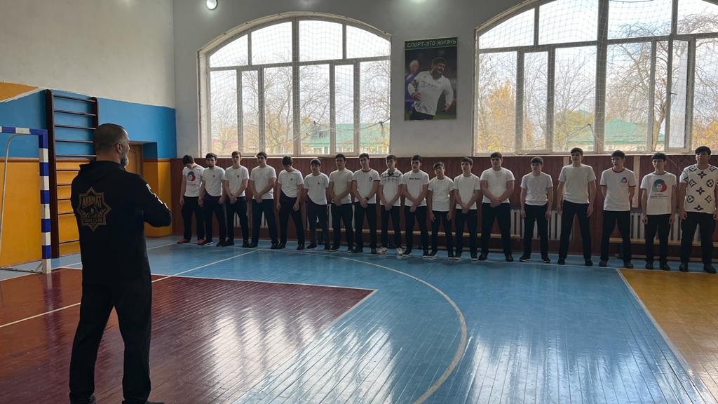 24.11.2022Во исполнение приказа ГБУ ДО «Республиканский детско-юношеский центр физического воспитания, спорта и туризма» от 21.10.2022 г.№71-п МУ в целях ознакомления обучающихся образовательных организаций с выполнением нормативов Всероссийского физкультурно-спортивного комплекса «Готов к труду и обороне» в гимназии совместно с выдающимся спортсменом Чеченской Республики, абсолютным чемпионом мира по Ичигеки, мастером спорта России международного класса Курбановым Лечи Алхазуровичем прошла акция «Зарядка с чемпионом».
