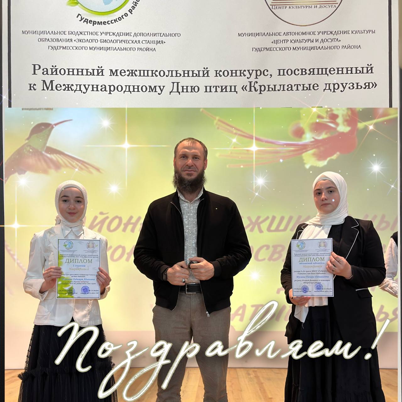Конкурс проводился с целью повышения природоохранной активности и воспитания ответственного отношения подрастающего поколения к проблемам сохранения птиц своего региона; систематизации и обогащения знаний детей о птицах; выявление творческого потенциала и распространение положительного опыта по формированию экологической культуры подрастающего поколения. По итогам конкурса ученицы 9 «А» класса Мусаева Динара стала Абсолютным победителем и Шаипова Хадижат стала обладателем Диплома I степени в номинации «Меня ты увидишь теперь лишь в музее». Дала т1аьхье беркате йойла!