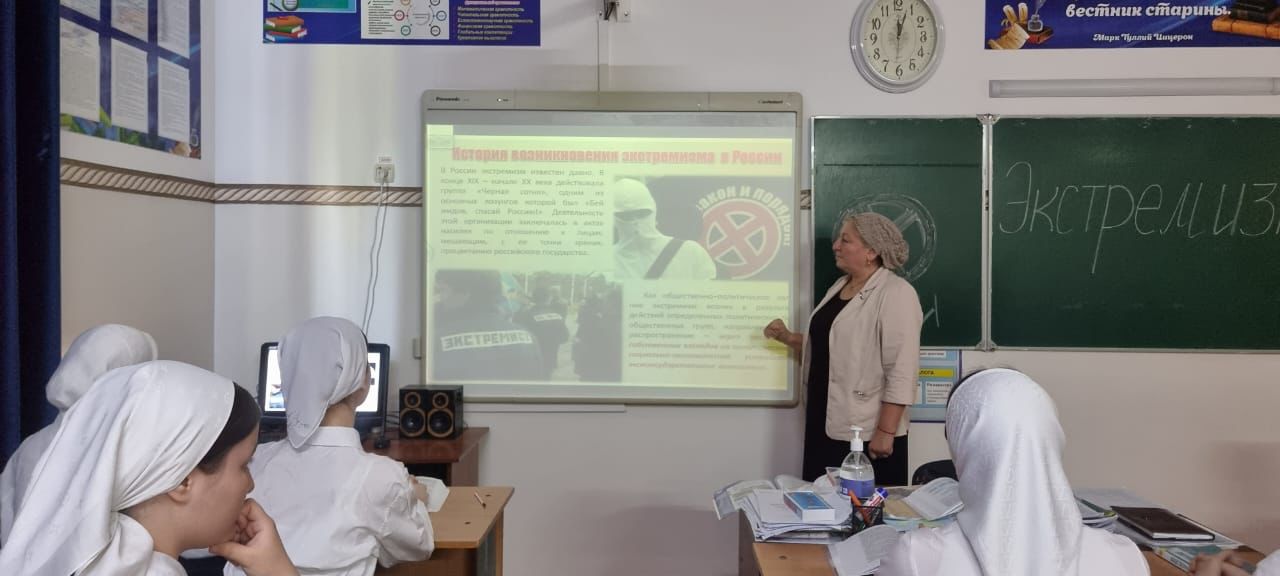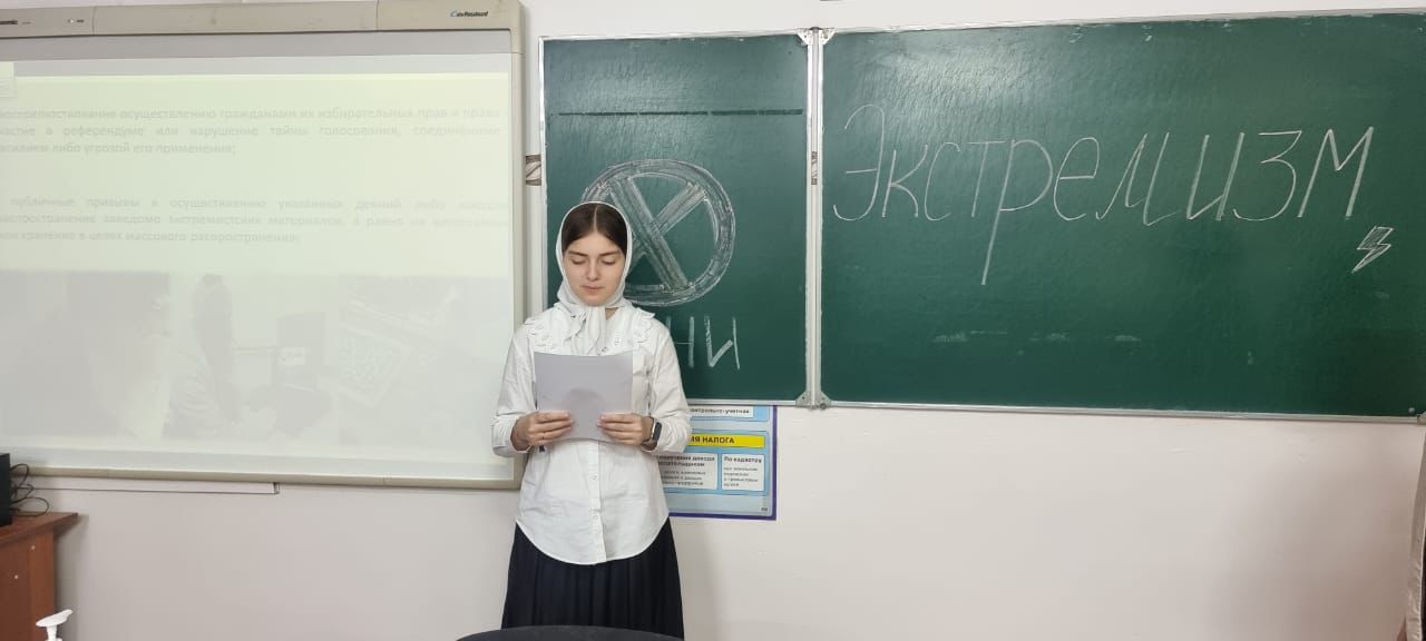 Внимание учащихся было акцентировано на необходимости проявления бдительности с целью профилактики совершения террористических актов. Обучающиеся узнали о причинах, видах экстремизма и его проявлениях в современном мире, об экстремистских действиях и их отличительных особенностях, а также последствиях и наказании за экстремистские действия. Такого рода мероприятия способствуют формированию толерантности и профилактике межнациональной розни и нетерпимости, способствуют духовному совершенствованию и самореализации,укреплению чувства патриотизма у подрастающего поколения.