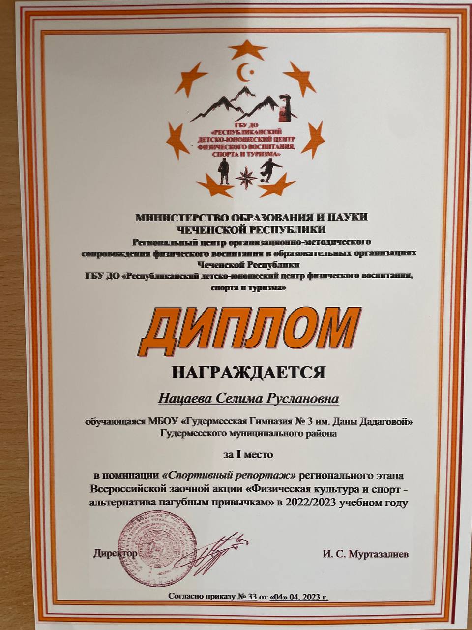 02.08.2023Делимся с вами нашей радостью! Очередное достижение обучающихся гимназии! Активисты РДДМ «Движение Первых» Нацаева Селима и Абкарова Амина стали победителями регионального этапаВсероссийской заочной акции «Физическая культура и спорт - альтернатива пагубным привычкам» в номинации «Спортивный репортаж» #РДДМ #ДвижениеПервых