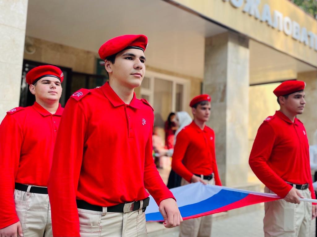 Традиционная линейка, посвящённые поднятию государственных флагов Российской Федерации и Чеченской Республики