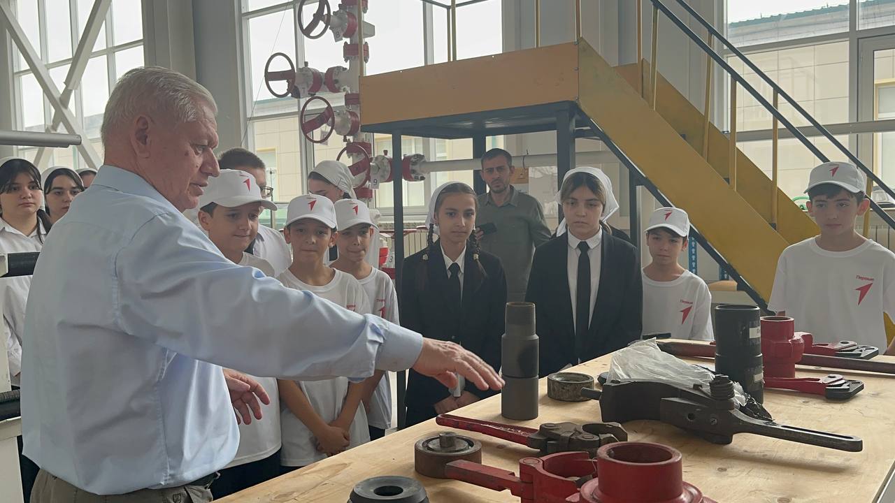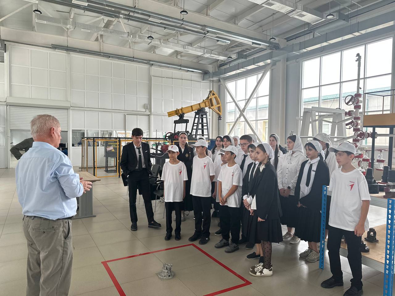 Обзорную экскурсию по участкам добычи нефти и газа и эксплуатации трубопроводов провел преподаватель института, мастер учебного центра ГГНТУ Косумов Лом-Али Эдикович, в ходе беседы ребята узнали, как перевозят большое количество нефти; мастер рассказал о перерабатывающих заводах, огромных скважинах, трубах, инструментах, которыми пользуются нефтяники. Ребята попробовали себя в роли водителей грузовой машины на симуляторах. «Я думал, что это очень легко, просто сел за руль и покрутил им, но я ошибался, это достаточно сложно водить такой огромной машиной даже на симуляторе. А еще я впервые увидел такие огромные ключи, узнал много интересного о нефти, как о горючем газе, понял, какая это важная и интересная отрасль», - с улыбкой поделился своими впечатлениями ученик 6 класса Алексеев Артем.