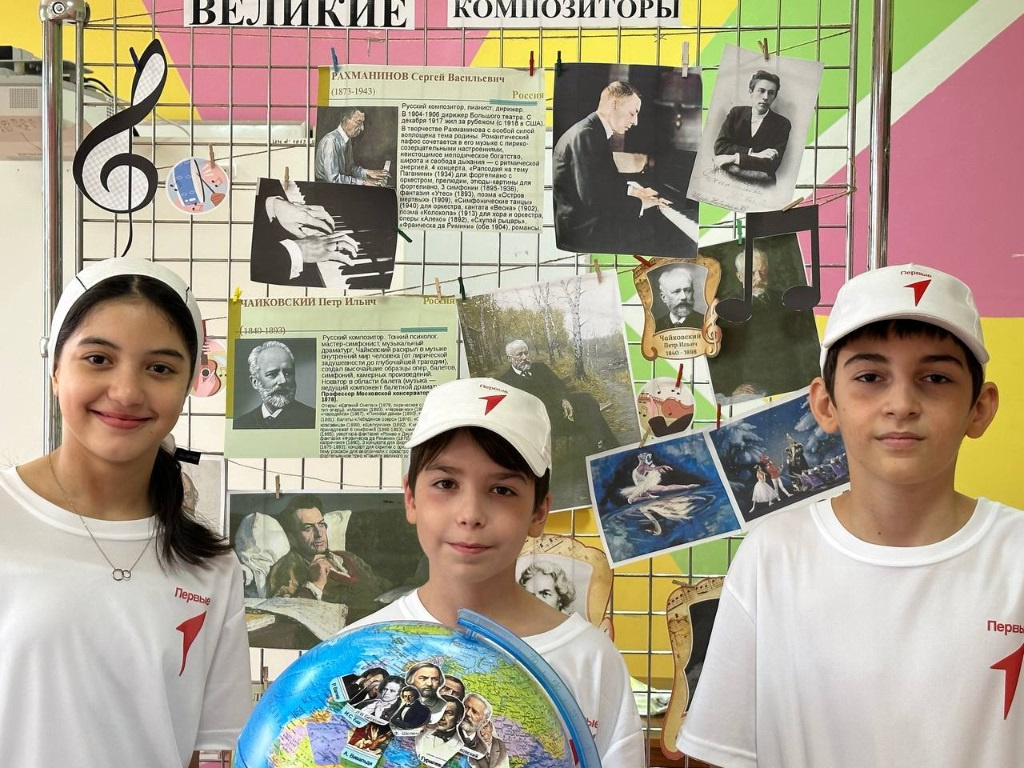 29.09.2023А именно портретную выставку великих отечественных и зарубежных композиторов; на глобусе отметили стикерами территории, где родились известные композиторы; обсудили биографию этих деятелей искусства.
