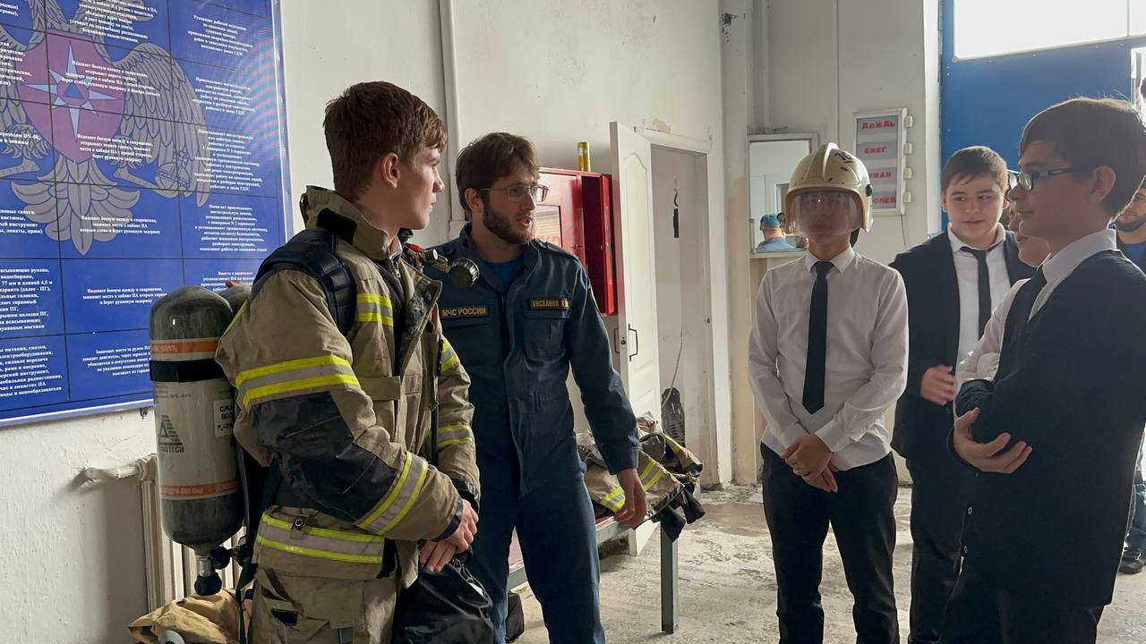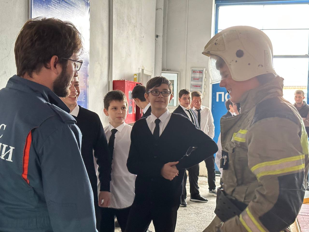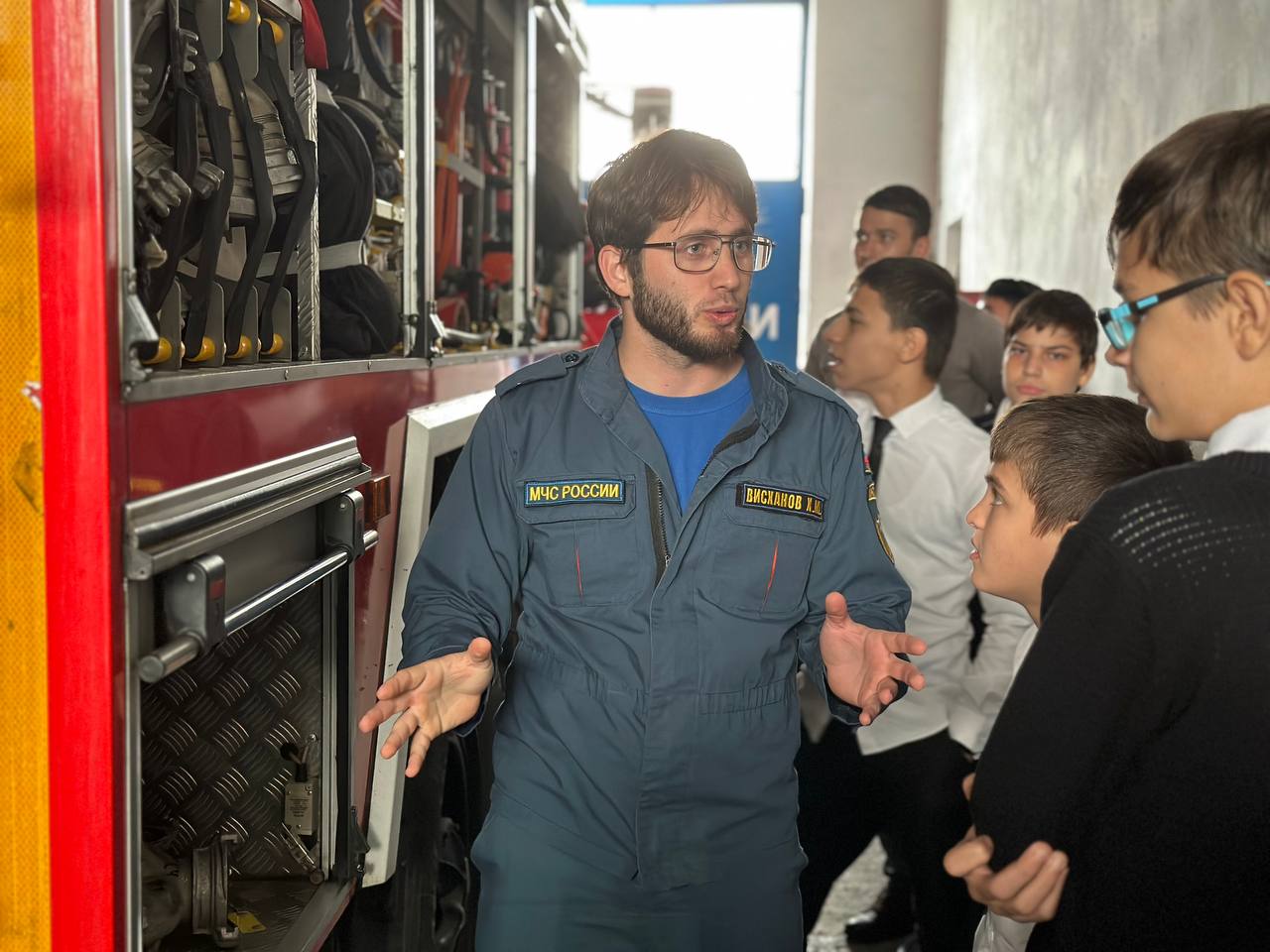 Экскурсию обучающимся провел сотрудник пожарной части, выпускник гимназии Висханов Хамзат, который рассказал детям о принципах действия защитного снаряжения и оборудования, о повседневной деятельности пожарных, показал экстренный сбор пожарного при вызове, помог им примерить форму пожарного, чтобы те смогли почувствовать себя настоящими пожарными.