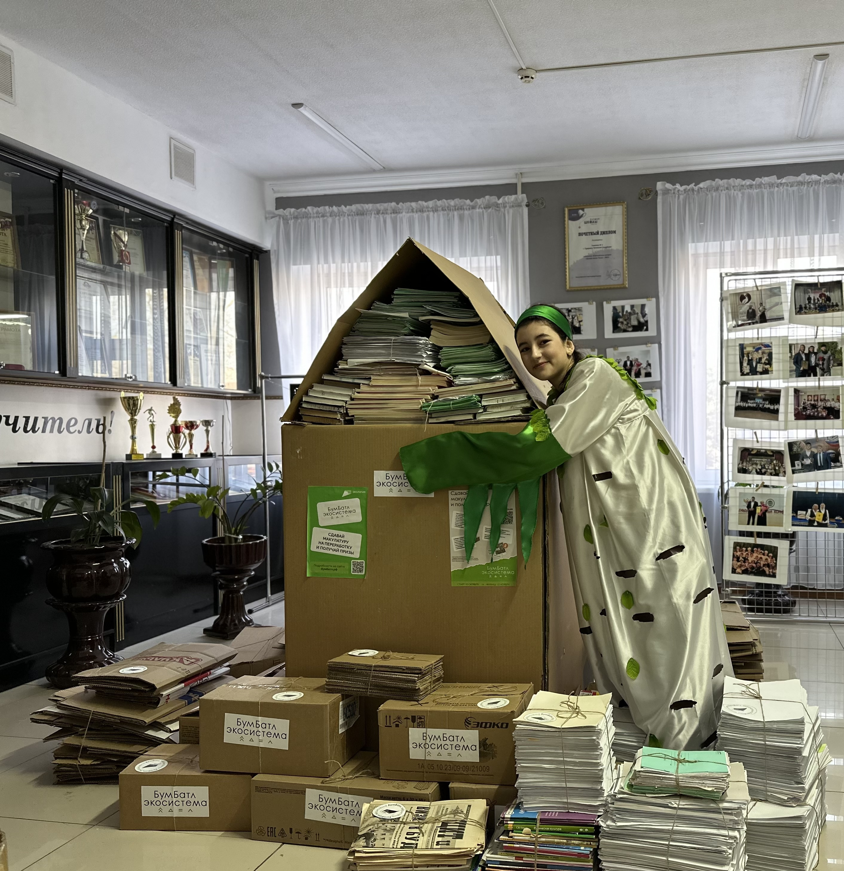 17.11.2023Обучающиеся,педагоги и родители Гудермесской Гимназии N3 имени Даны Дадаговой приняли участие во Всероссийской акции по сбору макулатуры в поддержку национального проекта «Экология», который реализуется по решению Президента РФ и направлен на приведение экологической ситуации в стране в соответствие с современными требованиями и стандартами. Цель акции «БумБатл» не только в сборе макулатуры, но и в пропаганде экологического сознания.