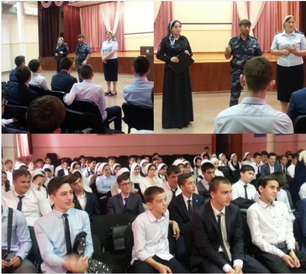 07.09.2017Сегодня с обучающимися гимназии состоялась встреча с начальником ПДН ОМВД России по Гудермесскому району А.Р. Байсултановым, ст.инспектором ПДН Бечуркаевой Р.А. с целью предупреждения об активно распространяющихся рассылках в соцсетях с призывом собраться в центре г.Гудермеса для поездки в Бирму и принятия участия в боевых действиях. Данные рассылки являются ложью, а сама акция целенаправленной провокацией со стороны так называемых лжеидеологов.