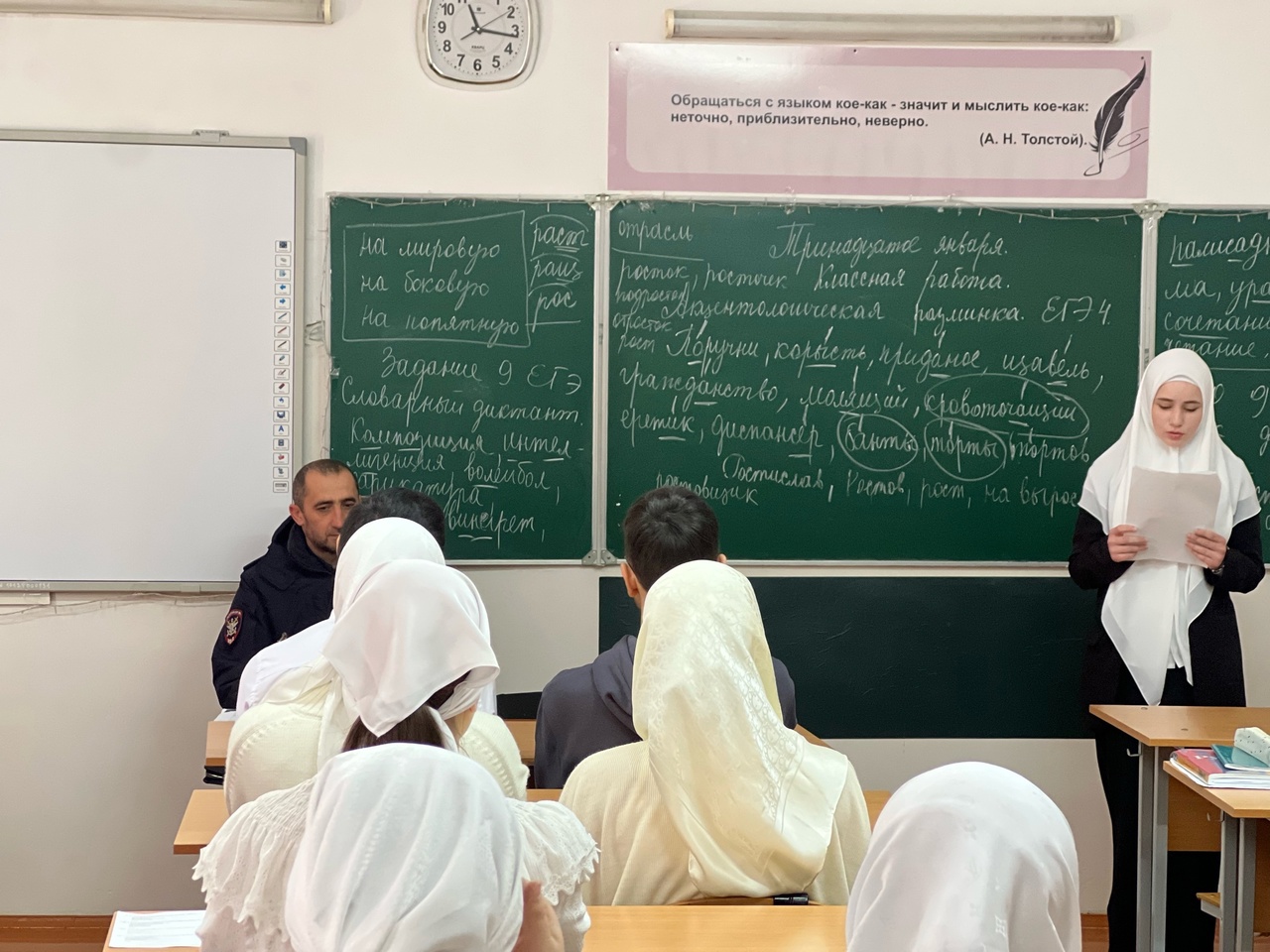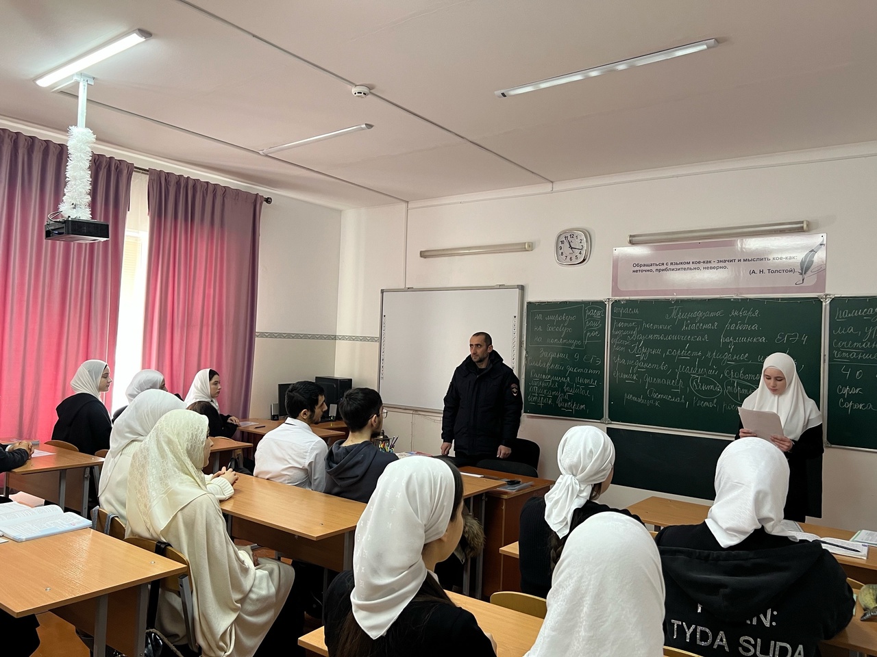 22.01.2024С ребятами поговорил лейтенант полиции ПДН ЛОП Косумов И.И. Лейтенант полиции И.И. Косумов рассказал об опасностях, с которыми сталкиваются дети на улице в зимнее время, таких как скользкие тротуары, плохая видимость из-за снега и тумана, а также ухудшение условий на дороге из-за плохой погоды.Он также поделился советами по безопасному поведению на улице в зимнее время, например, о том, как правильно переходить дорогу, как себя вести на гладком льду, и как быть видимым для водителей.Лейтенант Косумов также подчеркнул важность носить яркую одежду и светоотражающие элементы, чтобы быть замеченными на дороге и избежать ДТП.В ходе беседы также были затронуты вопросы безопасного поведения на железной дороге, привлечено внимание учащихся к тому, что переход железнодорожного пути в неположенных местах или на красный свет может привести к трагическим последствиям. Поэтому следует рассмотреть правила безопасного пересечения железнодорожных путей и обратить внимание на переезды и пешеходные дорожки.После беседы, обучающиеся были более осведомлены о возможных опасностях на дорогах зимой и получили полезные советы по безопасному поведению.