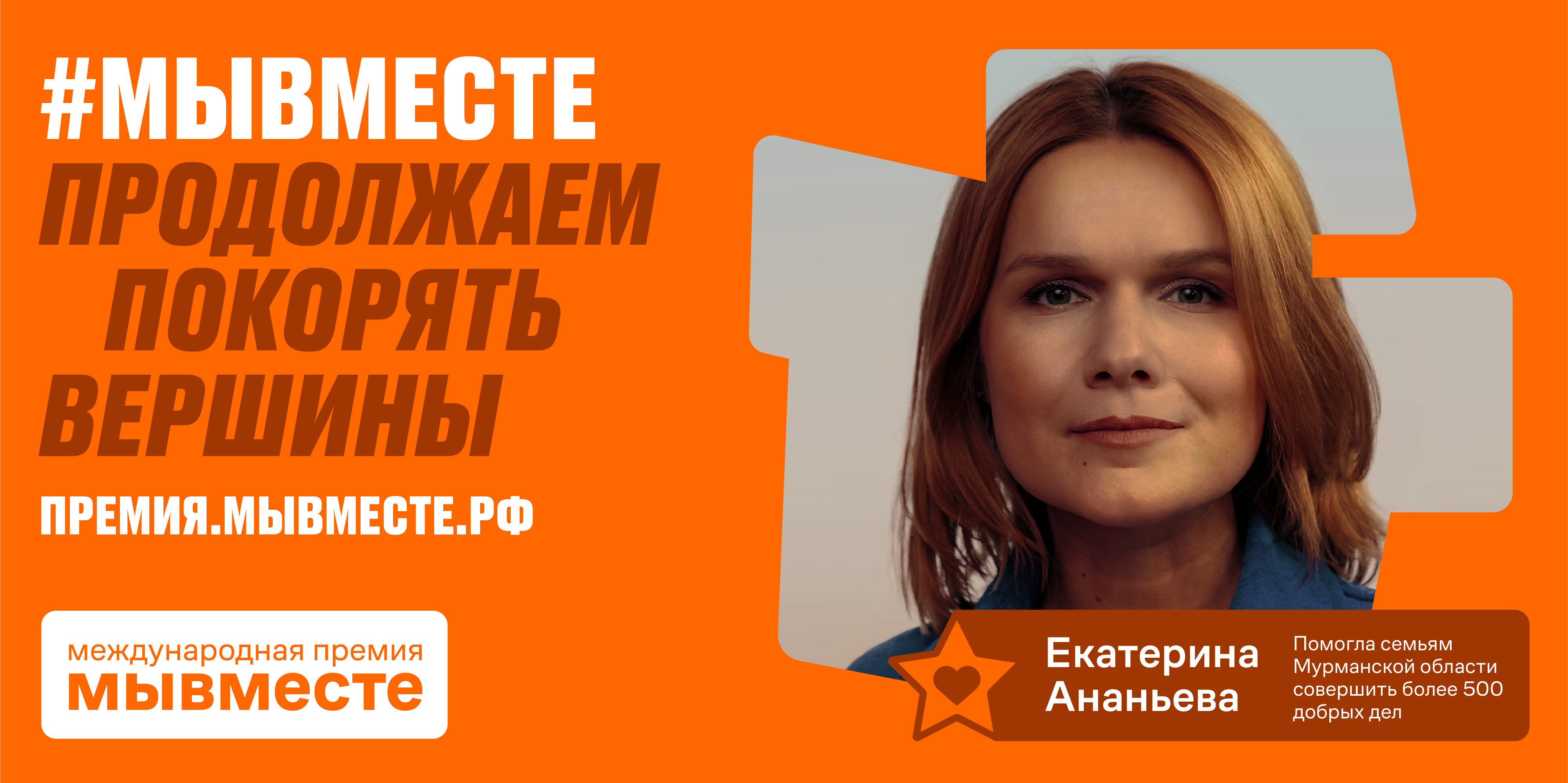 Международная Премия #МЫВМЕСТЕ проводится по поручению Президента России. Организатор Премии — Ассоциация волонтерских центров, учредителем выступает Федеральное агентство по делам молодежи. Цель Премии — признание и поддержка проектов, направленных на помощь людям и повышение качества жизни в России и мире. Оргкомитет по присуждению Премии #МЫВМЕСТЕ возглавляют Первый заместитель Руководителя Администрации Президента России Сергей Кириенко и заместитель Председателя Правительства России Татьяна Голикова. Премия проводится при поддержке национального проекта «Образование».