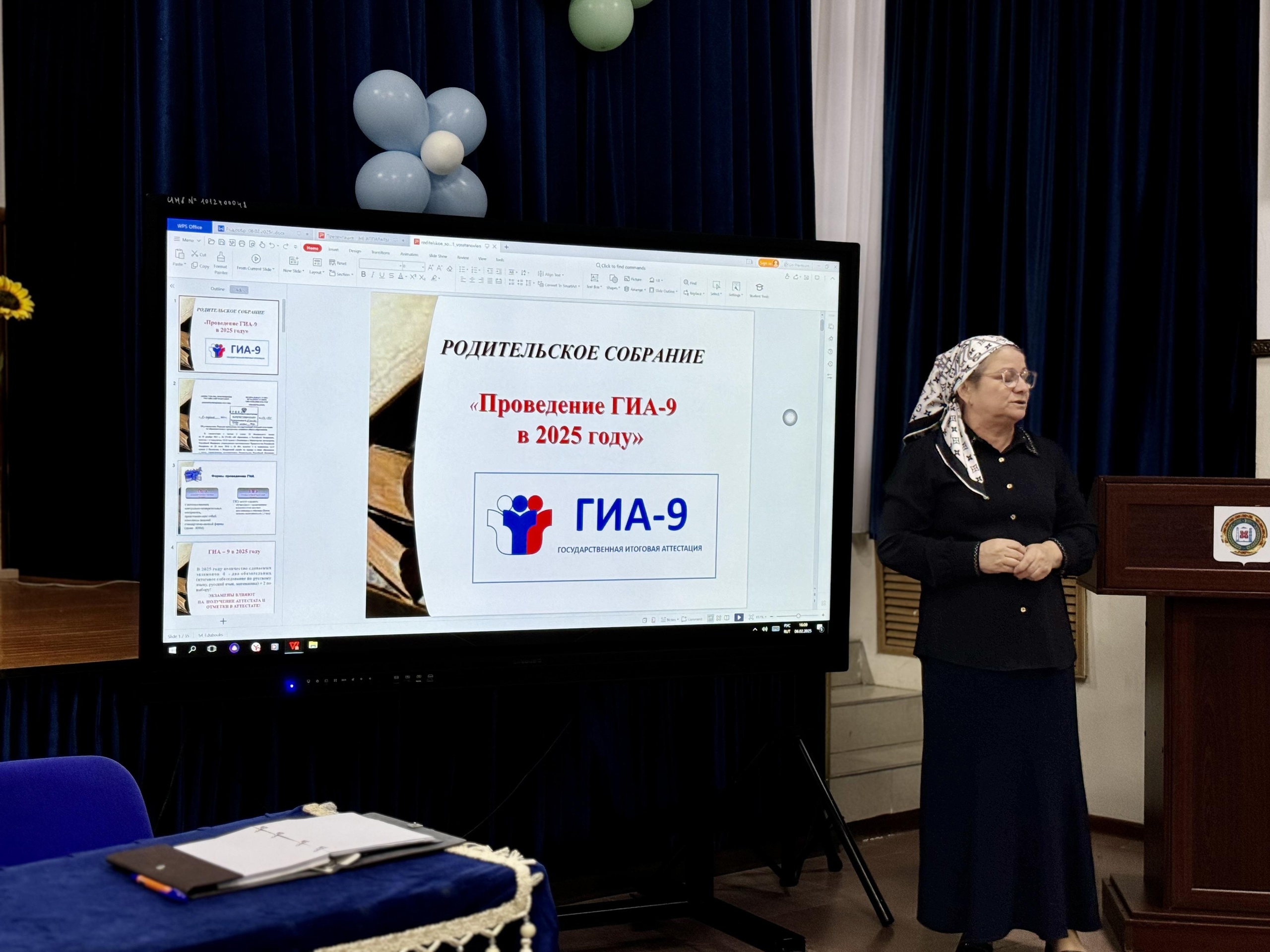 10.02.2025Темой собрания стала организация проведения государственной итоговой аттестации по образовательным программам основного общего образования и среднего общего образования в 2025 году.Также родители были ознакомлены с порядком проведения ГИА и с расписанием основного периода сдачи ОГЭ и ЕГЭ.На собрании также выступила Куразова З.Г. , преподаватель-организатор ОБЗР с докладом на тему «Обучение населения в области безопасности жизнедеятельности».