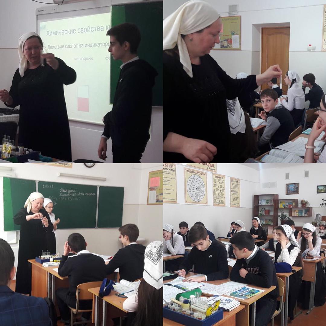 В рамках предметной недели химии и биологии Мовлаева Луиза Зайндиевна в 8 А классе провела открытый урок по теме:"Химические свойства кислот".