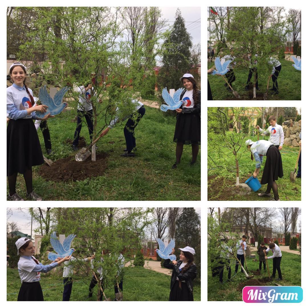 В День мира и согласия ребята из команды активистов РДШ посадили символическое дерево мира в память о девочке, которая не успела увидеть мирного неба,чье имя носит наша гимназия.