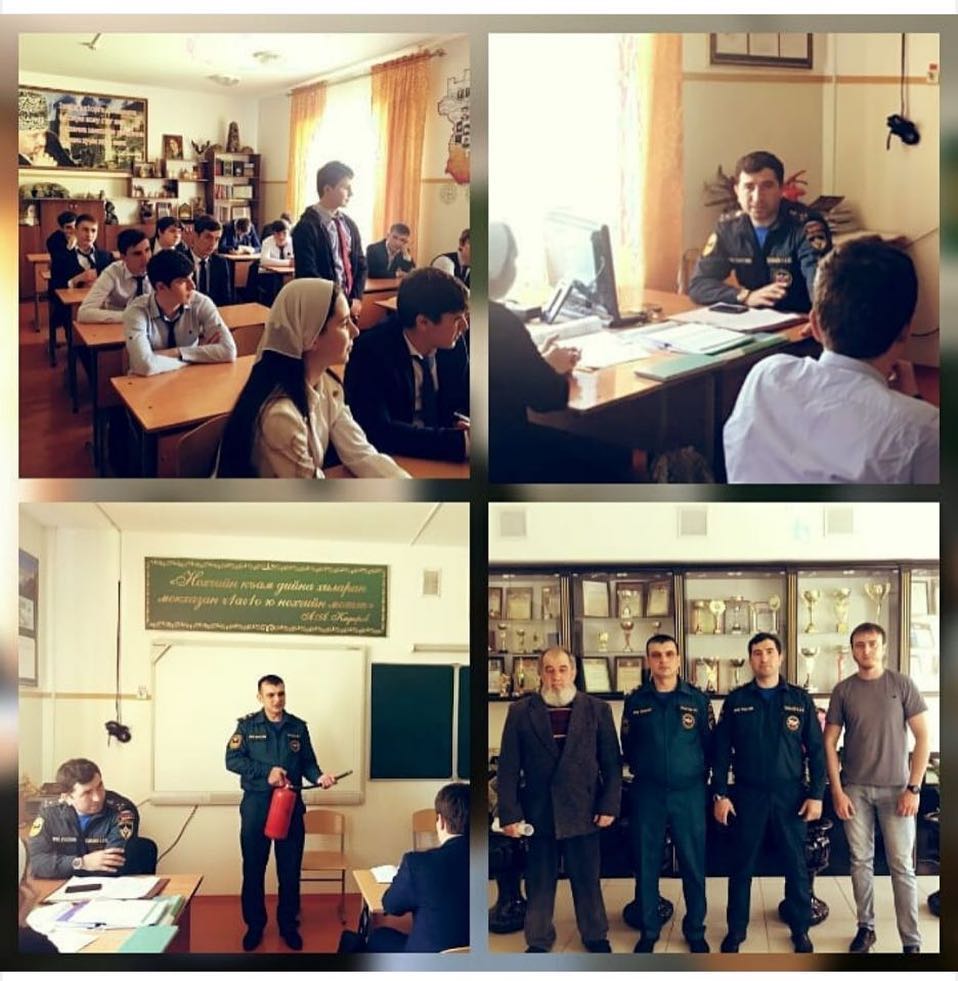 В ходе своего выступления начальник гарнизона Тазбаев С.С-Х. также упомянул о соблюдении безопасности при купании. В ходе беседы с учащимися пожарный ПСЧ-10 г. Гудермес сержант вн. службы А. Н. Абзотов продемонстрировал правильное обращение с огнетушителем при необходимости.