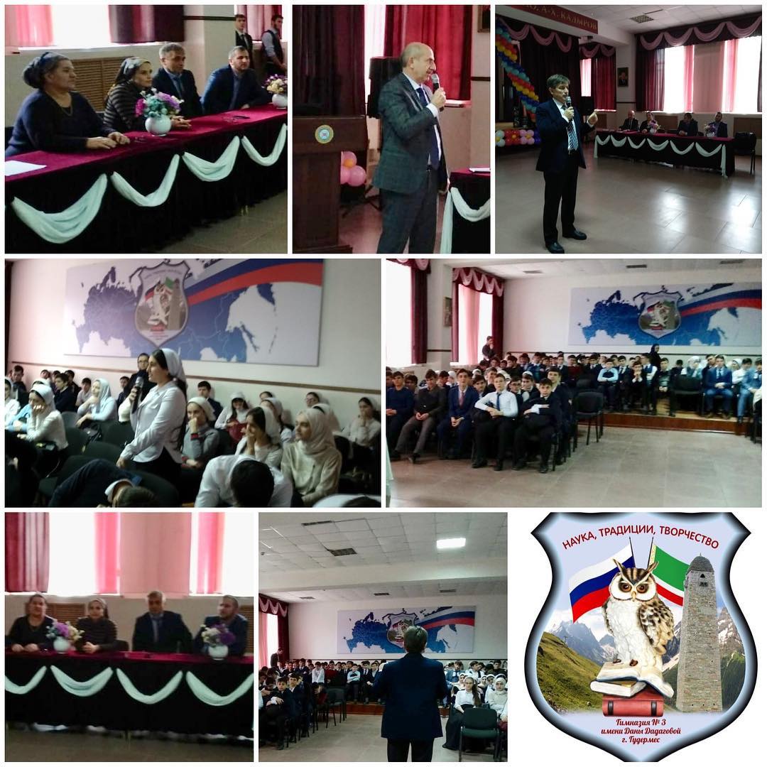 12.12.2018Сегодня, 12 декабря 2018 года, в актовом зале МБОУ «Гудермесская Гимназия N3 им. Даны Дадаговой» прошла встреча обучающихся 9-11 классов с проректорами ФГБОУ ВО ГГНТУ им. акад. И.Д.Миллионщикова с целью оказания профориентационной помощи обучающимся выпускных классов в выборе профиля обучения. Обучающиеся познакомились с профильными специальностями вуза, требованиями, предъявляемыми к абитуриентам.