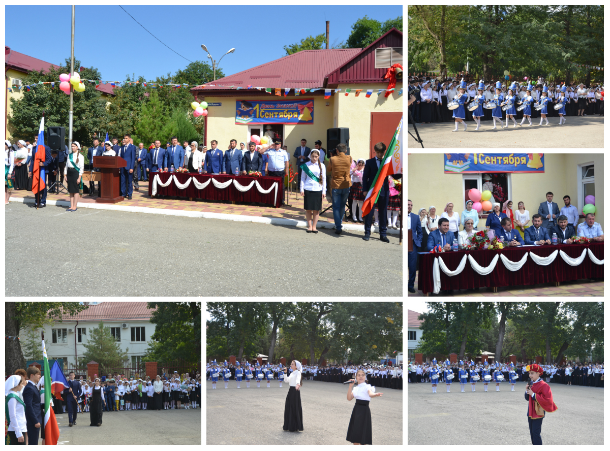 По уже сложившейся традиции открывали торжественную линейку юные барабанщики, и под марш Рокоссовского лучшие выпускники внесли знамена РФ и ЧР. Арцуева Элина и Куразова Селима, исполнили в подарок для всех учащихся задушевную песню «Любимая школа». Продолжили праздничную программу Канаева Петимат и Денисултанова Тамила, исполнив песню «Первый звонок». Украсил праздник своим выступлением и веселый сказочный персонаж «Страны Знаний», Знайка, в роли которого выступил Аюбов Артур. Он провел задорную перекличку и «ритуал» обращения к повелителю пятерок. Фраза «Хочу учиться на пятерки» с веселым заливистым смехом учащихся звучала убедительно и восторженно.