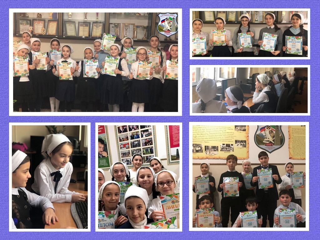 Обучающиеся 8 А класса: Виситаева Айнура- 1 место; Чагаева Даяна -1 место; Шайдаева Иман-2 место; Гелисханова Амина -2 место; Куразова Селима -2 место; Чагаева Раяна -2 место. Также за участие награждены сертификатами - Татиева Хеди, Азизова Мансума, Ахъядов Абдул-Рахьим, Кулаева Амина, Закаев Идрис, Саидмагомедов Билал.