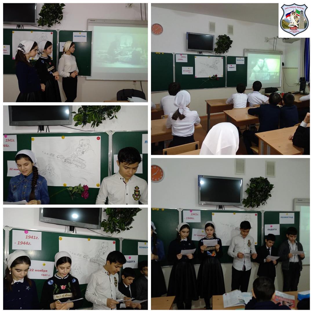 Классный час «Дорога жизни», посвящённый 75 летию снятия блокады Ленинграда, 7 А класс, классный руководитель Дудаева Луиза Хасановна.