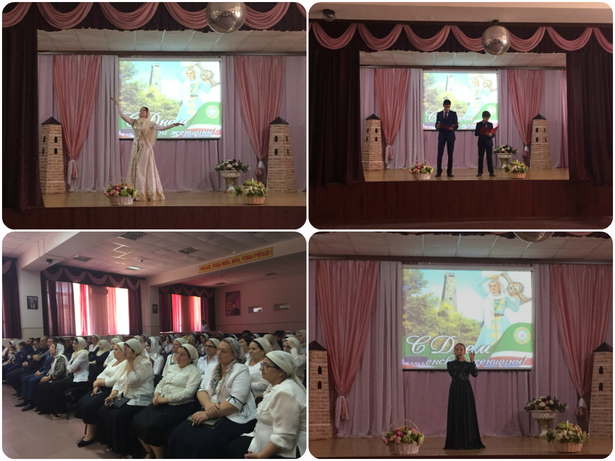 Ведущие мероприятия Байгереев Арсен и Аюбов Артур ознакомили присутствующих с историей появления этого праздника, рассказали о подвигах известных в истории знаменитых женщинах. Мурзабекова Эльза ученица 11А класса заворожила всех своей пластичностью и четкостью каждого движения в исполнении танца «Дадин Айбика». Прекрасно исполнила песню «Нохчий йо1» Арцуева Элина. Также Амлиева Маьлх – Аьзни спела песню о самом дорогом человеке – матери, почитание которой священный долг каждого. Мовлаева Петимат и Аюбов Артур прочитали стихотворения, посвященные прекрасным горянкам и их бесценному и неоценимому подвигу- жизни во благо Родины.