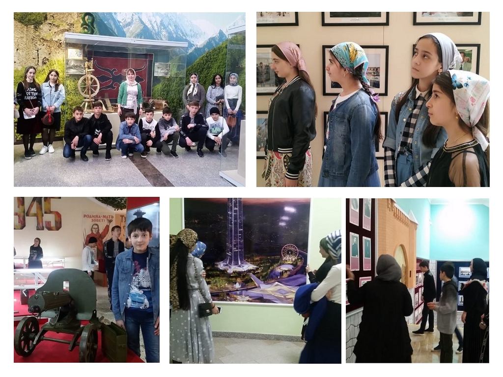 17.04.2019В рамках реализации Единой Концепции духовно-нравственного воспитания и развития подрастающего поколения с целью создания условий для становления всесторонне развитой и социально-мобильной личности, стремящейся к освоению нравственных, исторических ценностей своего народа - патриотизму, гражданственности, исторической памяти, долгу; формирования основ национального самосознания для обучающихся 7 г класса (классный руководитель Абдулхалимова Зарема Имрановна) и 6 Д класса (классный руководитель Мачигова Таиса Абдулаевна) организована экскурсия в краеведческо-исторический музей ГБУК « Национальный музей Чеченской Республики».