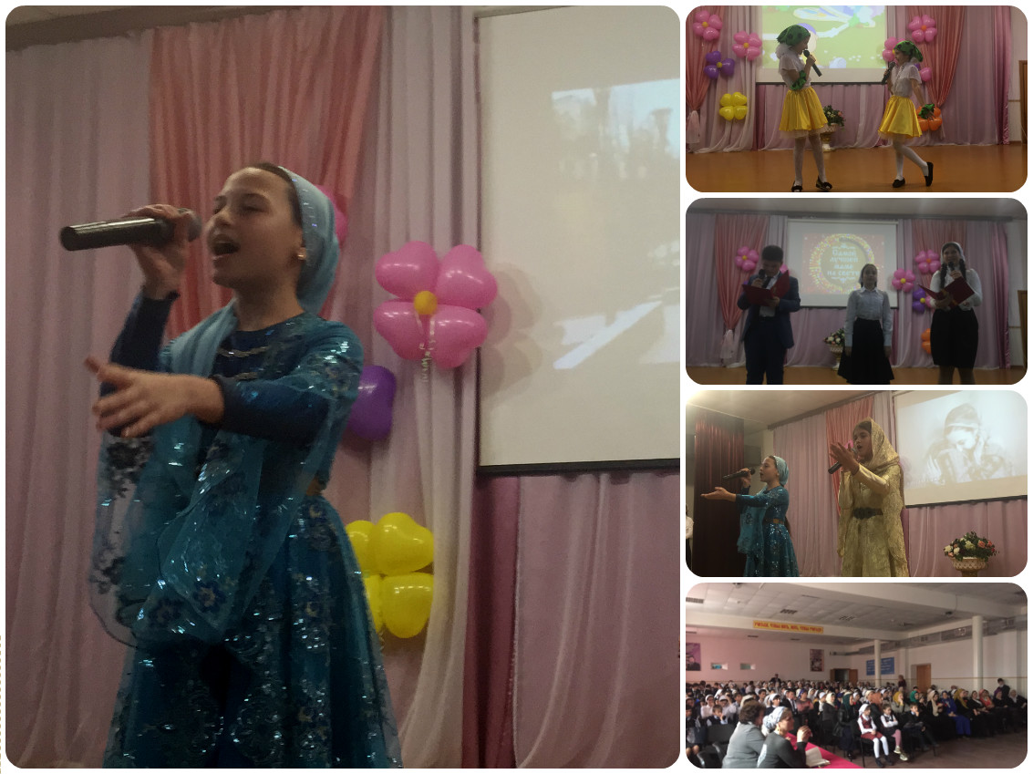 Четкое начало и эмоциональный тон, заданный ведущими Атаевой Раяной и Эльмурзаевым Тагиром, позволили создать атмосферу праздника и взволнованности. Лирическими строчками легенды о матери начали мероприятие. Амлиева Маьлх-Аьзни, Куразова Селима своим проникновенным голосом исполнили песни о любви к матери на чеченском и русском языках. Все концертные номера исполнялись детьми с чувством любви, нежности, по-своему ответственно, что вызывало у присутствующих одновременно и улыбку и слезы.